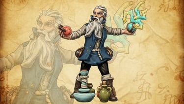 Maestro di pozioni, con la sua arte cura gli alleati o distrugge i nemici.